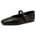Design: Elegant ballet flats featuring a modern square toe, a secure buckle strap closure, and a chic belt buckle detail for added sophistication.
