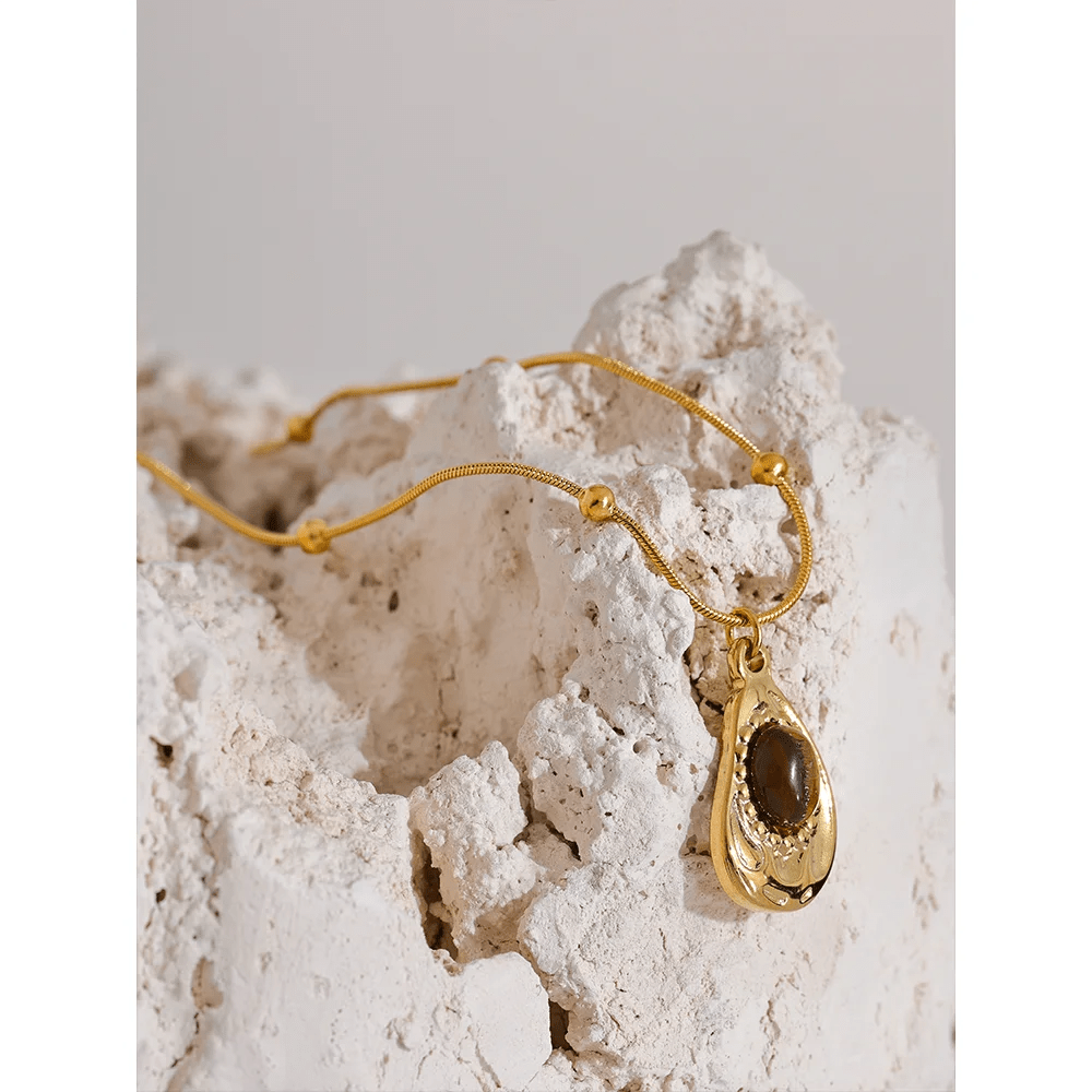 Design: Trendy pendant necklace featuring a striking tiger stone pendant with a geometric pattern, adding a bold and elegant touch.