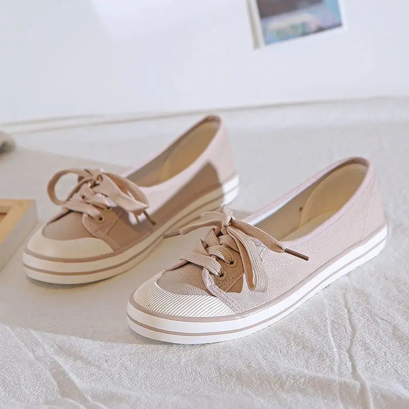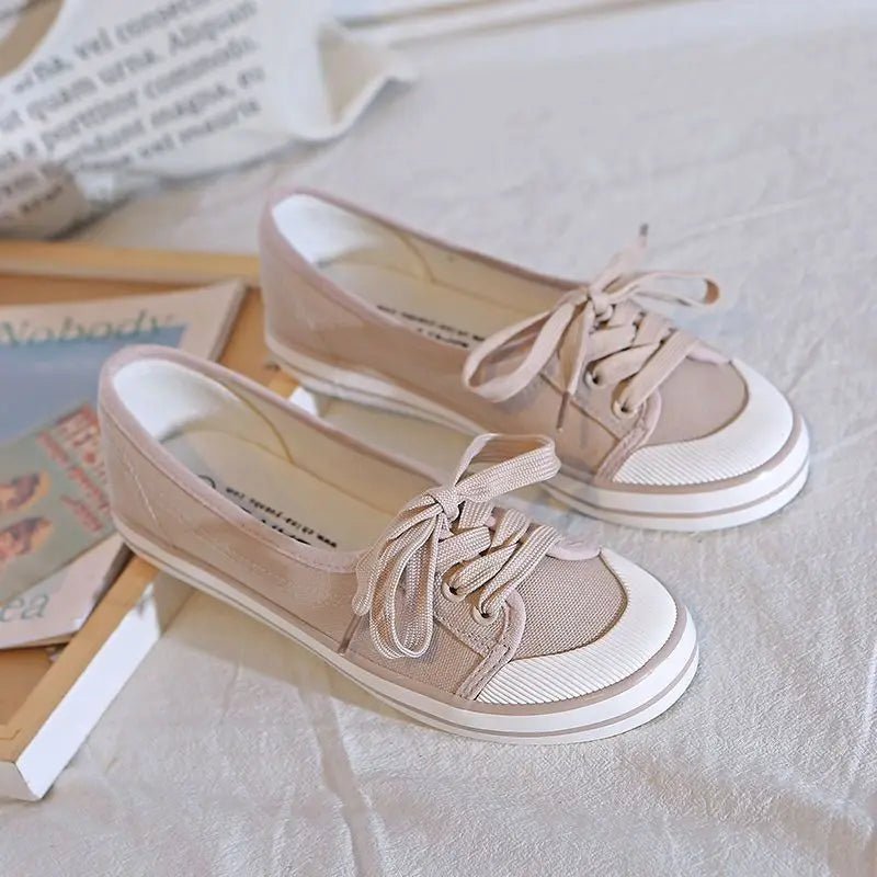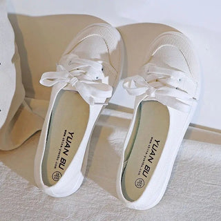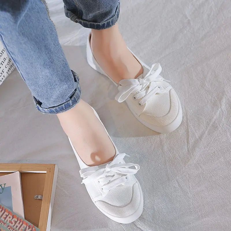 Design: Sleek and minimalistic lace-up white sneakers featuring a shallow cut and a flat heel design. Made with a fabric insole and cotton fabric lining, these sneakers provide comfort and breathability for everyday wear.