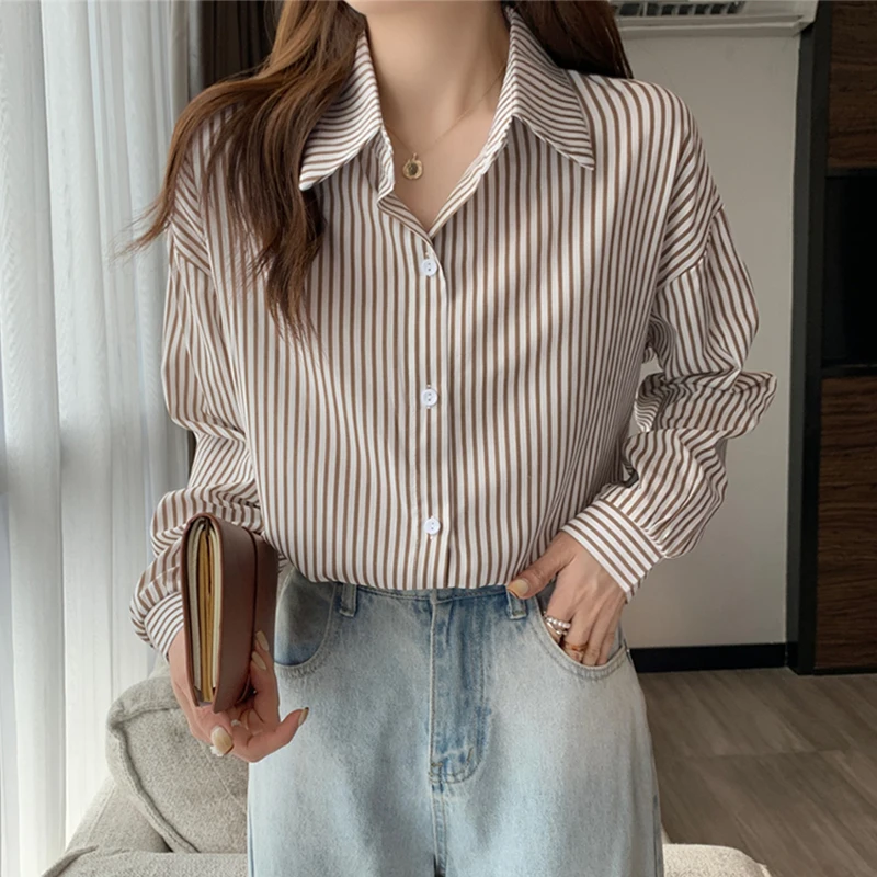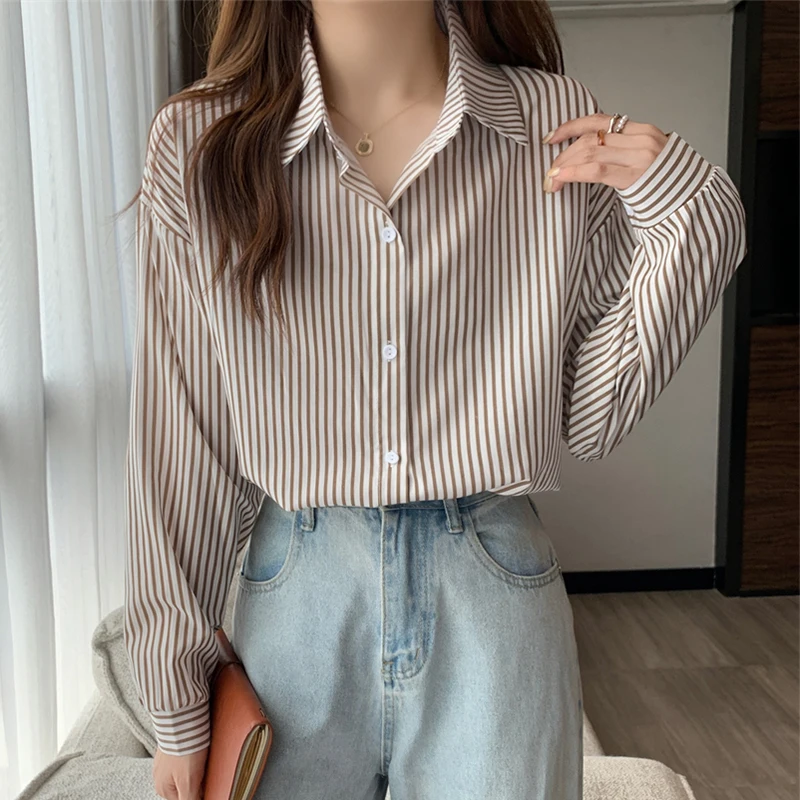 B STYLE Package included:1 Blouse Material:100% Polyester Colors:Brown,Blue,Green Sleeve Length:Full Sleeve Neckline:Turn-Down-Collar Pattern:Stripe Printed Buckle chain:Button Down Front,Button Cuffs Thickness:Thin Style:Leisure,Bohemian,Retro,Europe Season:Spring,Autumn,Winter Occasion:Family,Party,Beach,Wedding,Holiday,Employment Label: Yes