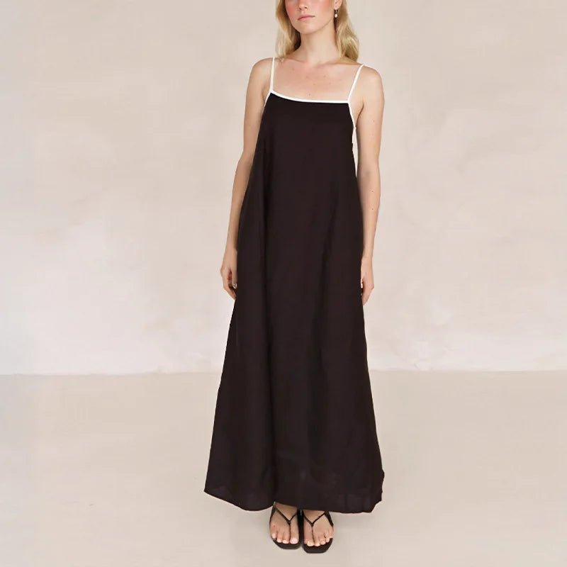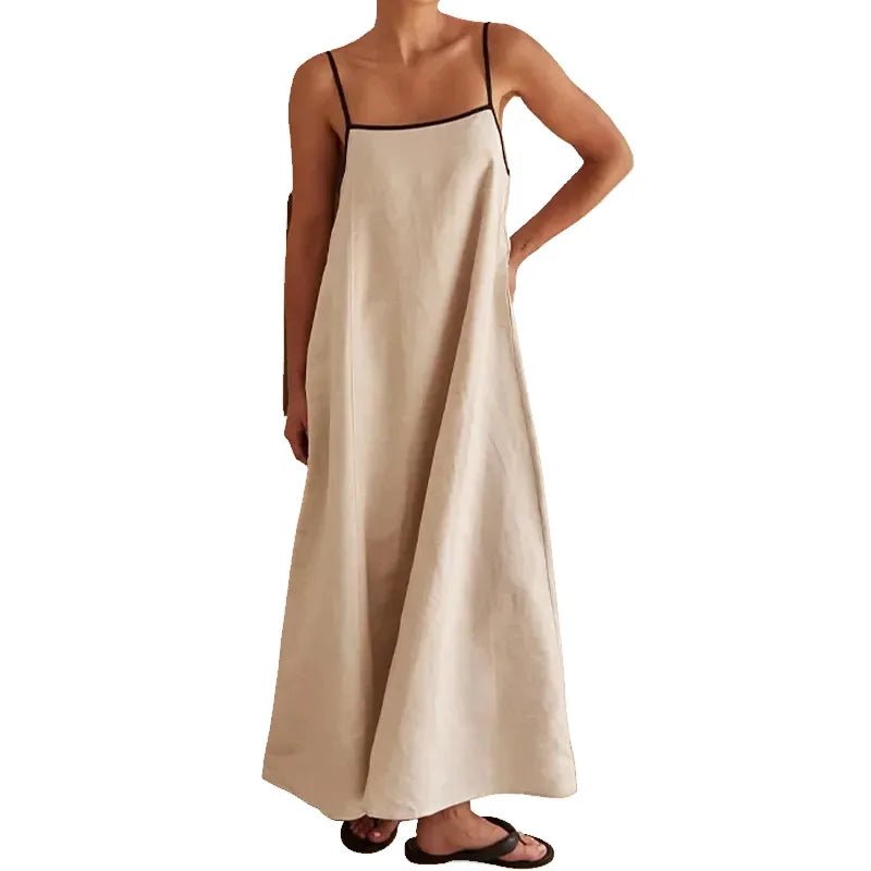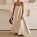 Design: A summer-ready elegant maxi dress featuring a square neckline, spaghetti straps, and a stunning backless design. The ankle-length A-line silhouette creates a flowy and effortlessly chic look.