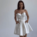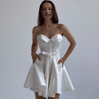 Sweetheart Satin Mini Bridal Dress with Pockets