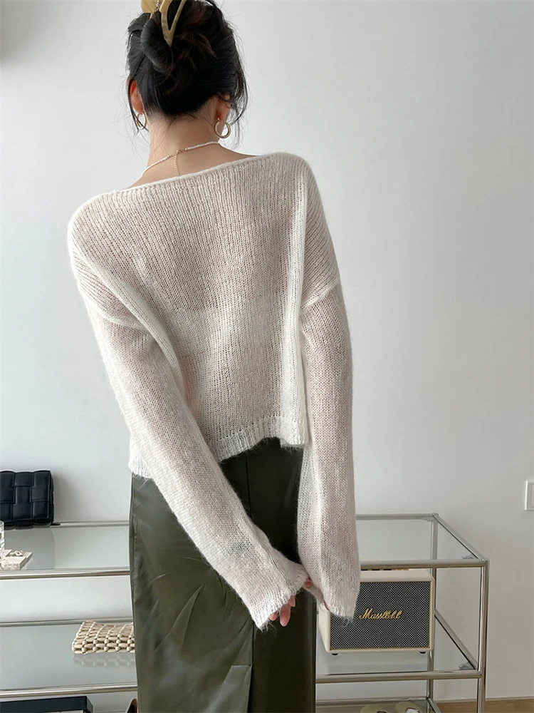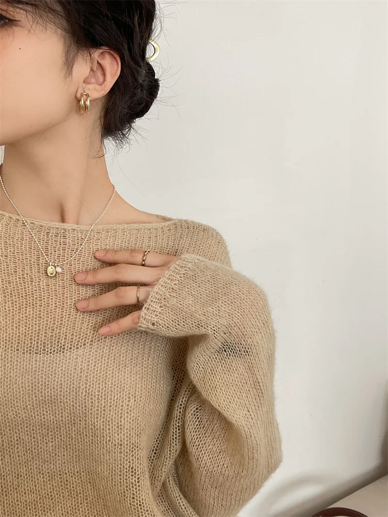 Stay effortlessly chic with this thin knitted sweater for women, crafted from a high-stretch wool and nylon blend for a soft, comfortable fit. Featuring a solid color, O-neck, and loose fit, this lightweight, transparent pullover adds a touch of casual elegance to any outfit, perfect for layering in any season.