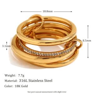 Design: A unique three-finger chain shape ring, featuring an irregular design plated with 18k gold for a bold and stylish statement.