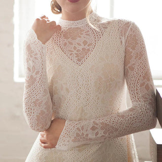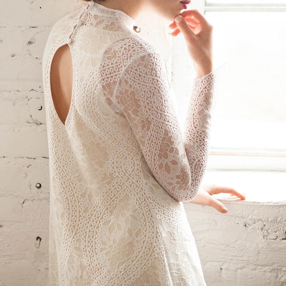 Turtle Neck Lace Keyhole Mini Bridal Dress