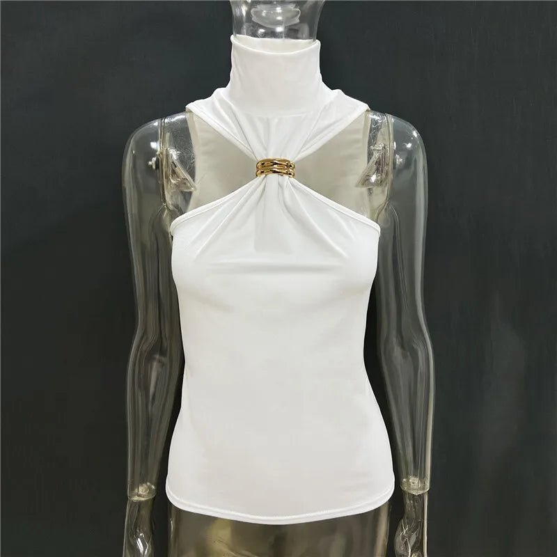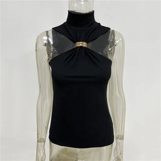 Turtleneck Metal Ring Tank Tops