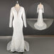 Classic mermaid wedding dress with a deep V-neckline and vintage-inspired lace details. This floor-length gown features full sleeves, a sheer back design, and a sweep train, creating a timeless bridal look. Crafted from lace with a built-in bra for added comfort, it’s customizable for a perfect fit and ideal for a romantic, retro-style wedding.