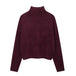 Cozy up in style with this vintage women's burgundy turtleneck sweater, perfect for casual autumn and winter outfits. Made from a soft blend of polyester and cotton, this knit pullover features a loose fit, slight stretch, and regular yarn thickness for ultimate comfort. The turtleneck design and long sleeves provide warmth, while the solid pattern ensures easy pairing with any wardrobe. Ideal for cozy days or casual outings, this thicken pullover is an all-match essential for the modern woman.