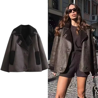 Design: This vintage faux leather plush coat offers a stylish and cozy look with a turn-down collar and single-breasted closure. The classic solid pattern and practical pockets make it both functional and fashionable, perfect for autumn and winter wear.