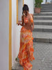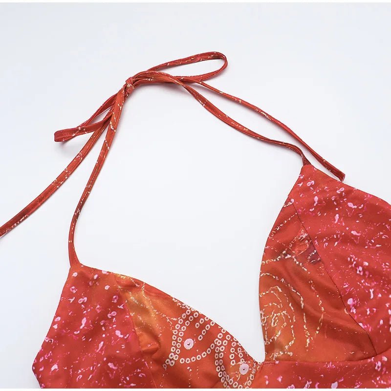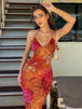 Design: Embrace effortless summer style with this vintage-inspired beach dress, featuring a bold green print and flattering cut-out details. Designed with a V-neckline, spaghetti straps, and a slim sheath silhouette that flows to ankle-length, this dress captures a free-spirited, high-street vibe perfect for sunny days and seaside escapes.