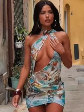 Vintage Print Cut-Out Beach Dress