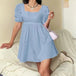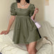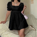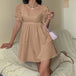 Design: Casual A-line mini dress featuring puff sleeves, a square collar neckline, and an elegant open back for a stylish, breezy look.